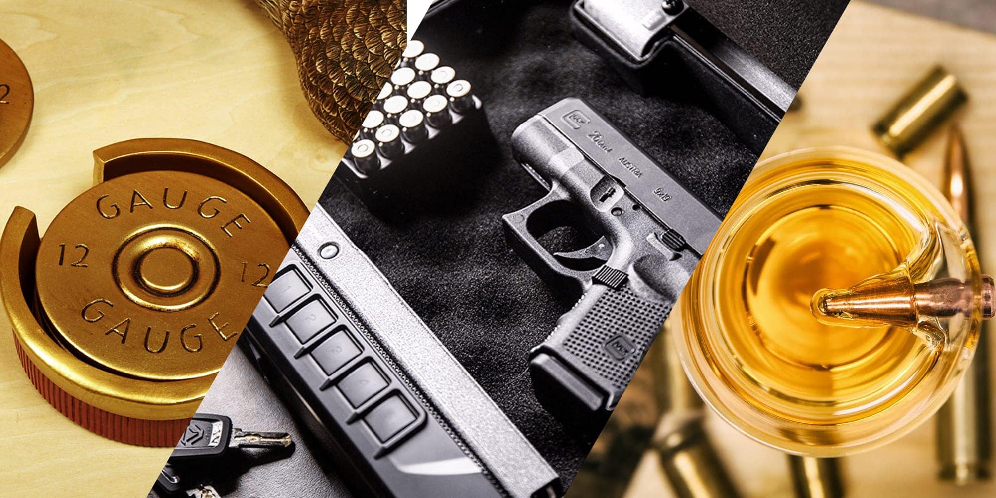 Shot Glasses (hand-blown): Somebody with a sense of humour decided to make Whiskey shot glasses with a bullet embedded in the side. Get it? It’s a ‘shot’ glass! These hand-blown glasses are typically sold individually, sometimes in a set of two. Not only is it a perfect gift combo with the shotgun coasters, it’s a great conversation starter since the dad-jokes write themselves.